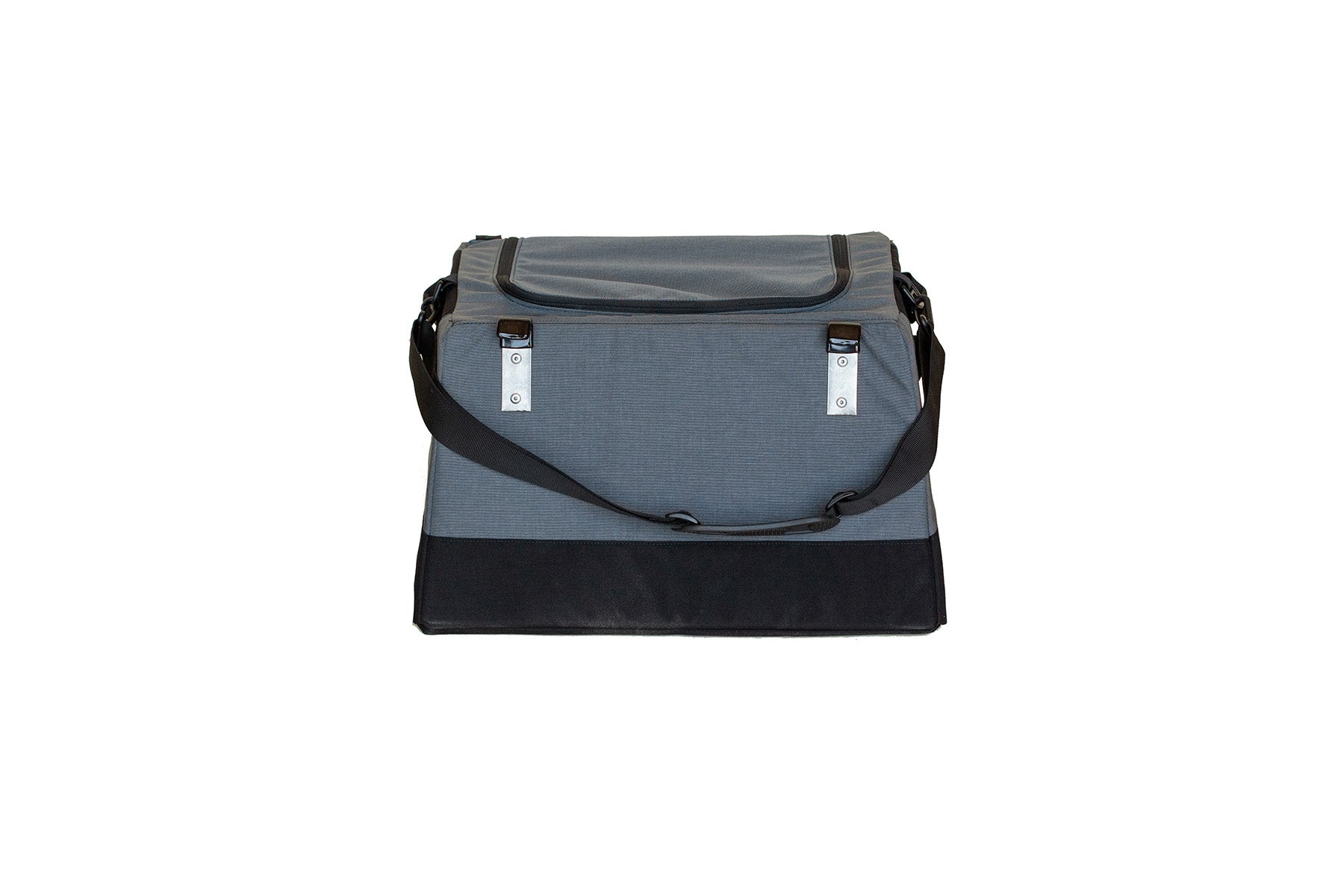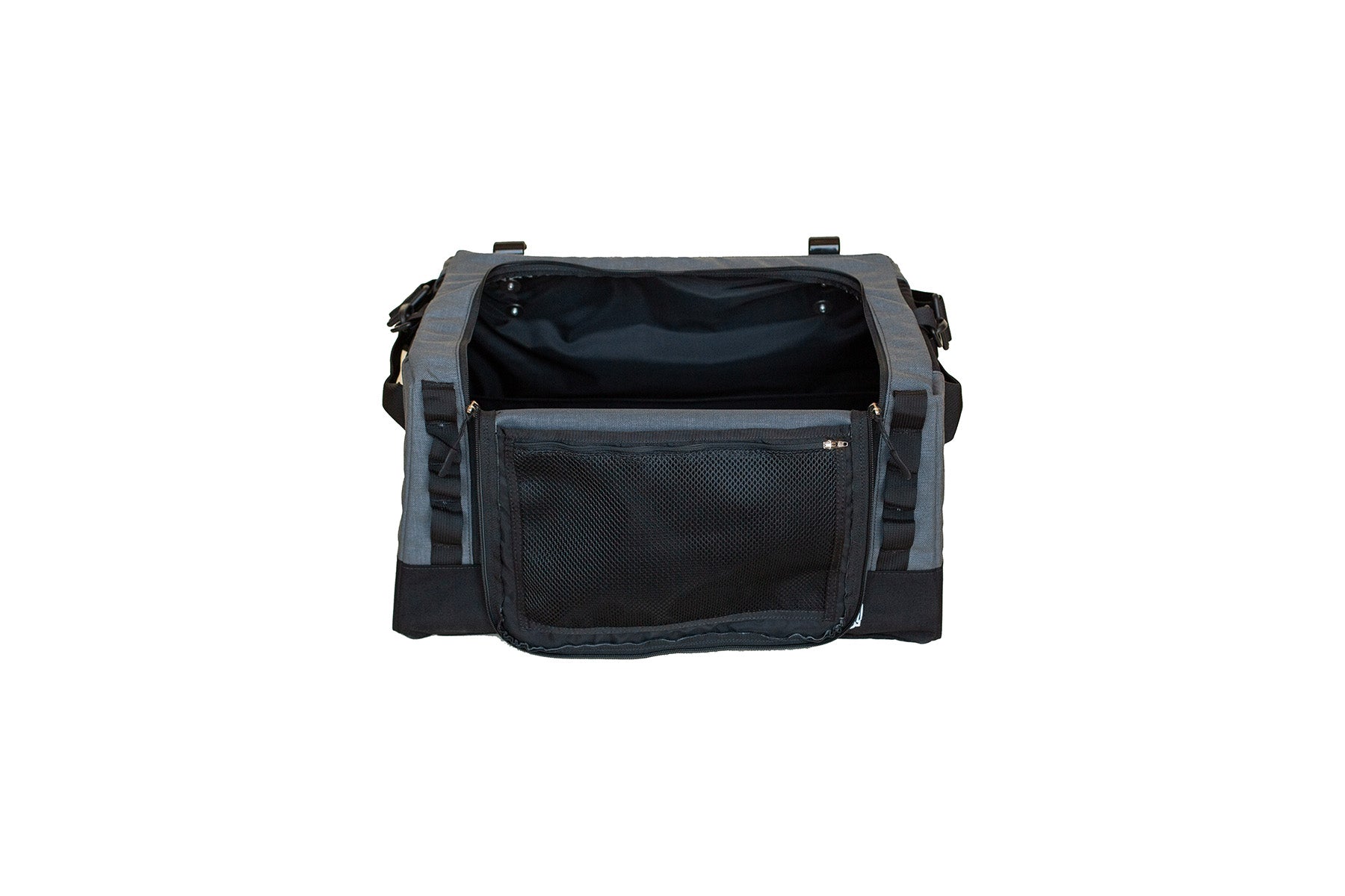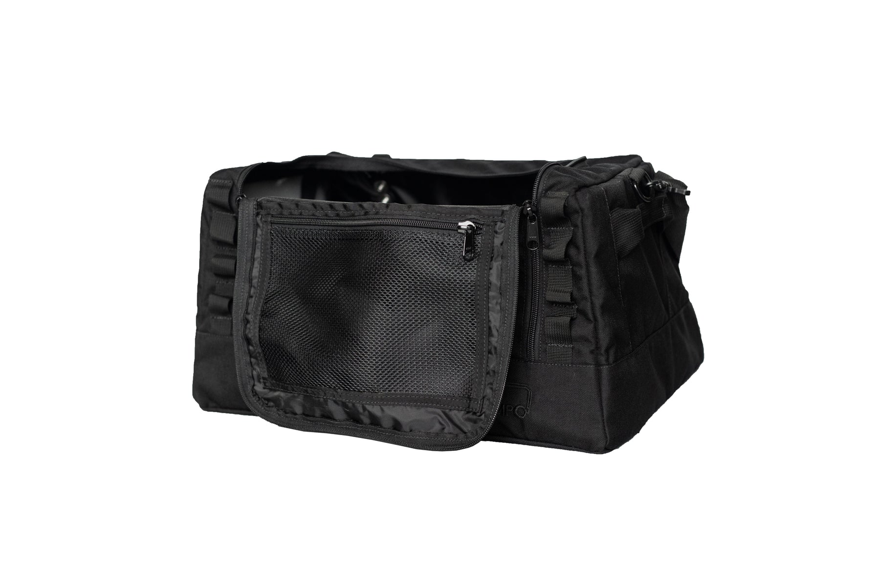 Proudly made in the USA, our medium sized bag features two front pockets for storing smaller items like toiletries or a giraffe, a fully closable 18 inch wide storage compartment, gear loops for clipping on extra, well, gear(!), and a shoulder strap.