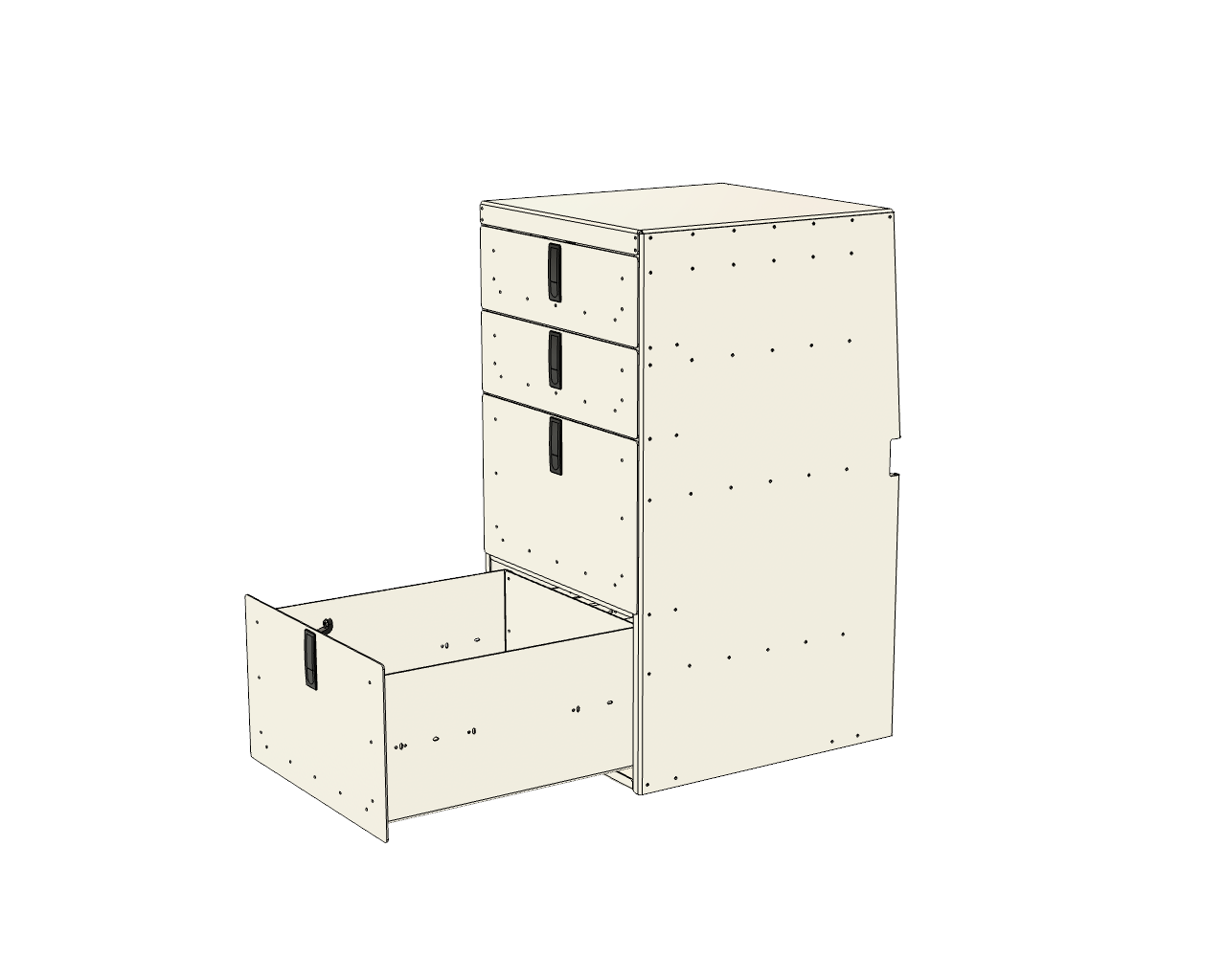 Four-Drawer Organization System: Features two distinct sizes to accommodate a wide variety of items, from small essentials to bulkier gear.