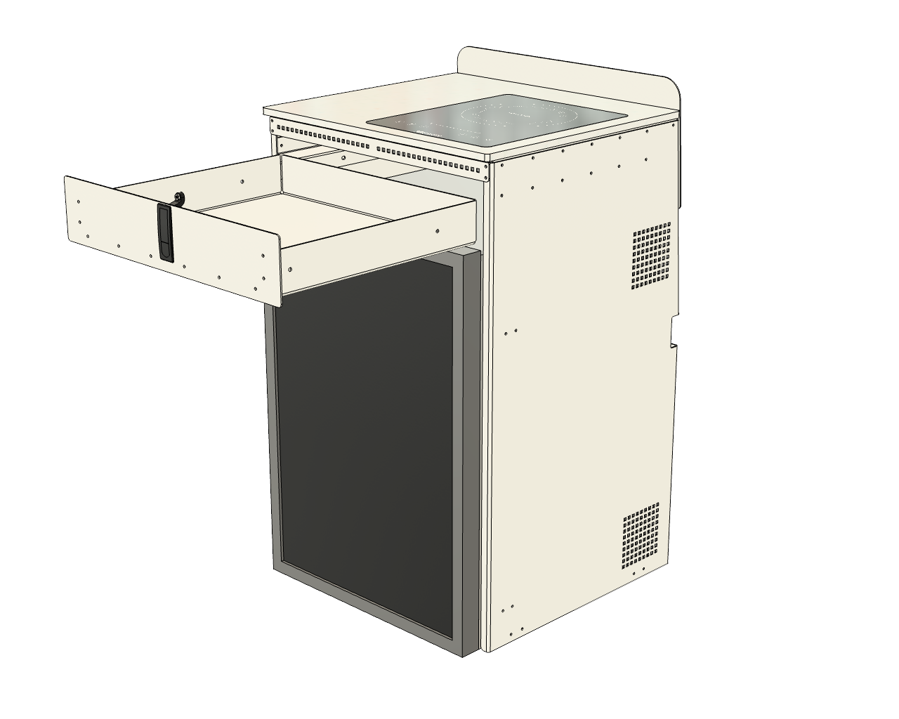 • Custom Countertop Option: A custom countertop can be added with a wide range of Formica Everform finishes, providing a versatile preparation area for food, serving, or a mini-bar setup.