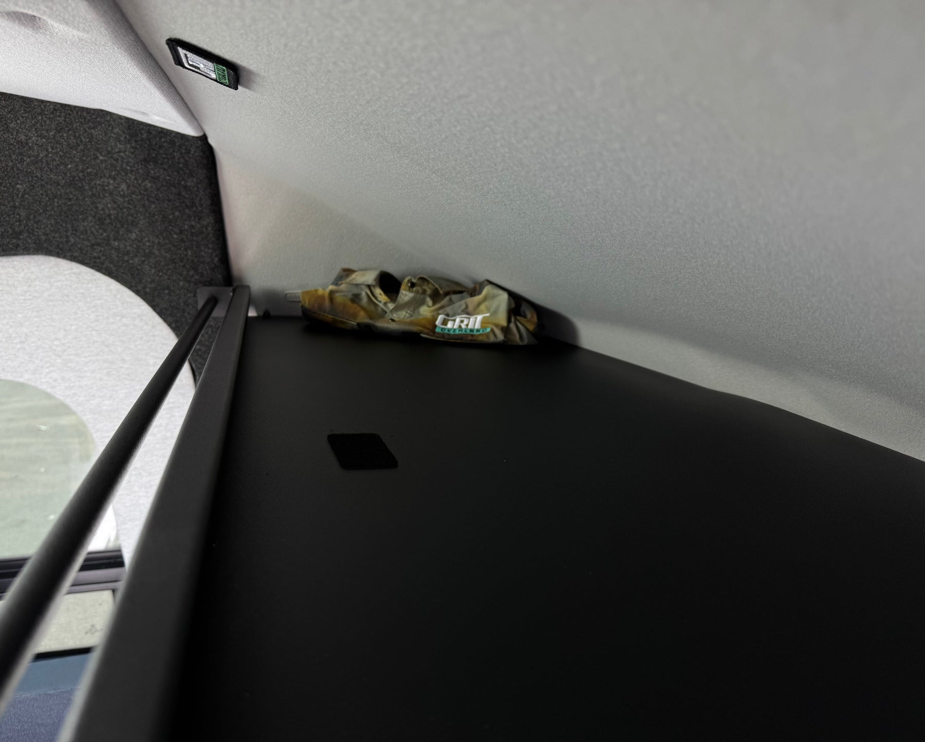 The Ford Transit Headliner Shelf creates additional storage above the cab.