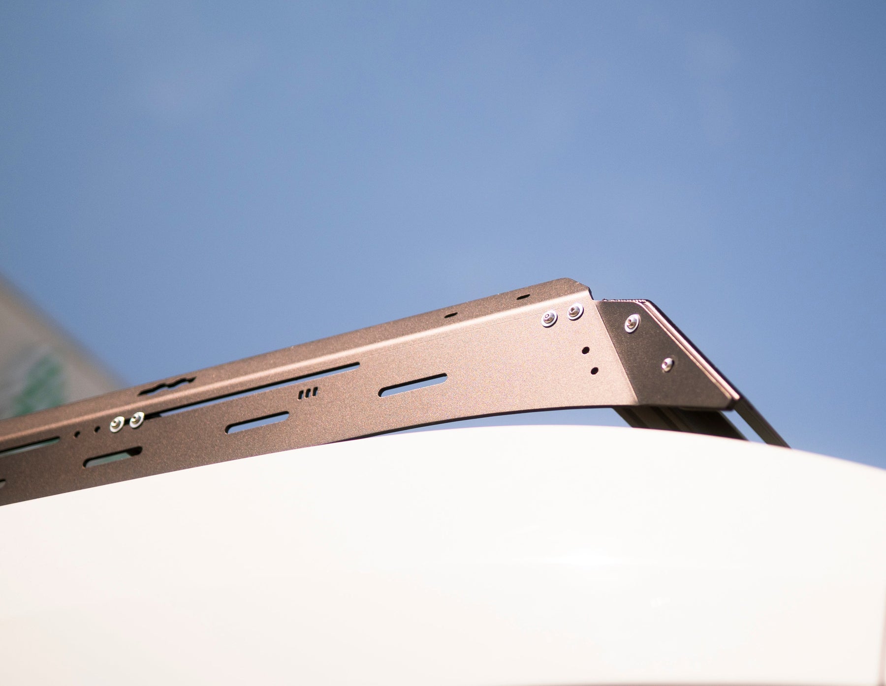This Scout Rack 148 has everything you need up top, including a multi-piece outer frame, aluminum extruded crossbars, Fiamma awning adapter plates, and all the hardware necessary for assembly & installation.