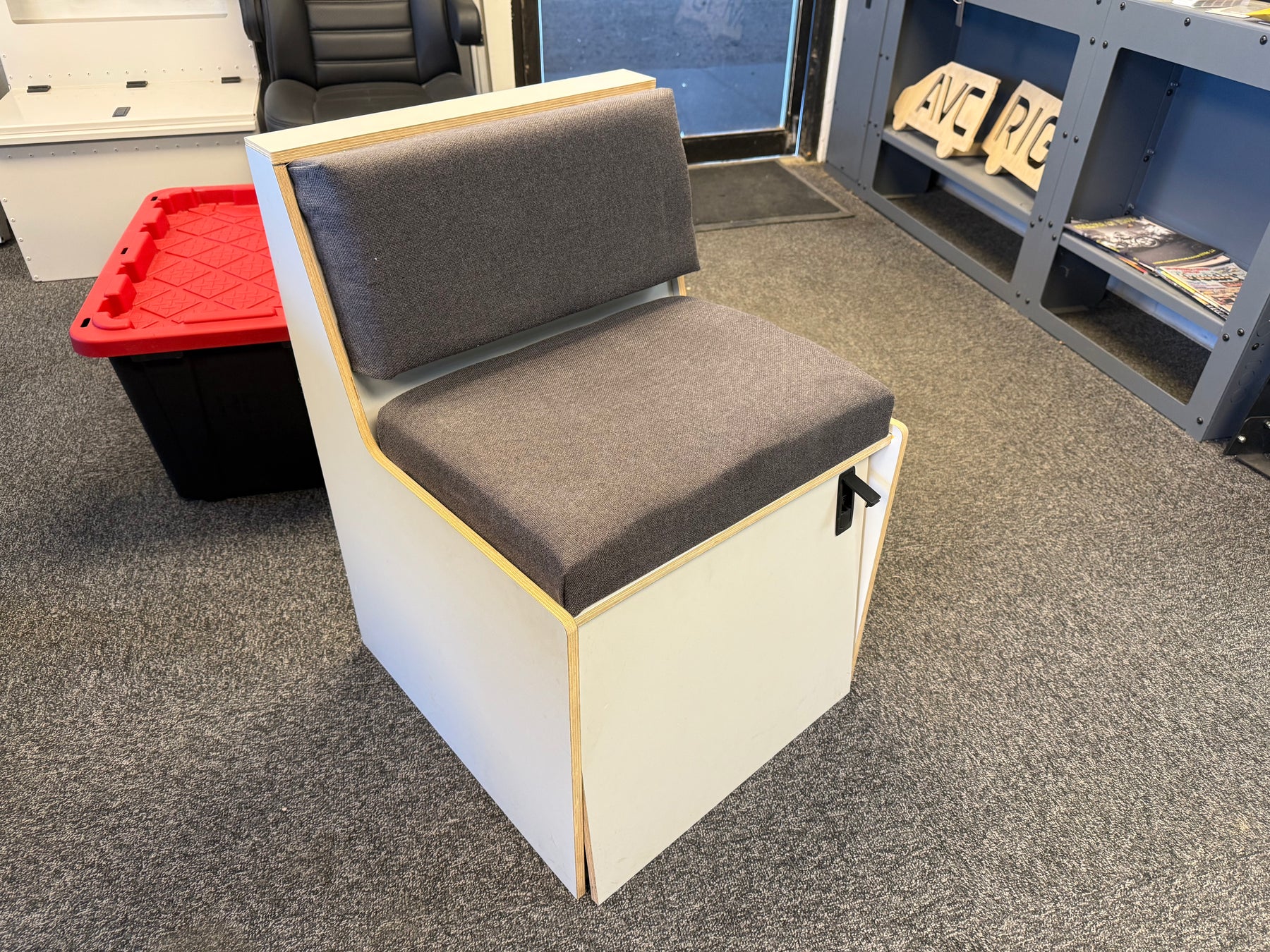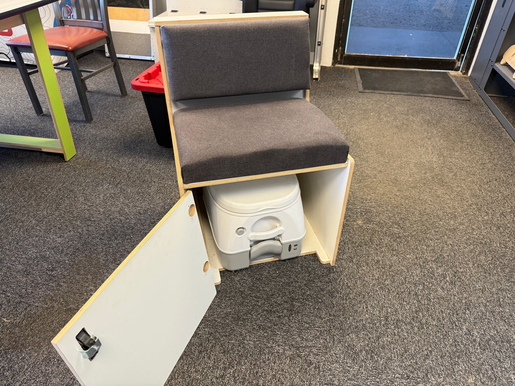 Wooden bench, fits a dometic 972 potty (not included of course). 21" wide, 22" deep, 30.5" tall. Matches wooden kitchenette.