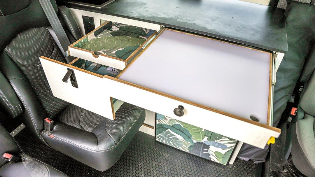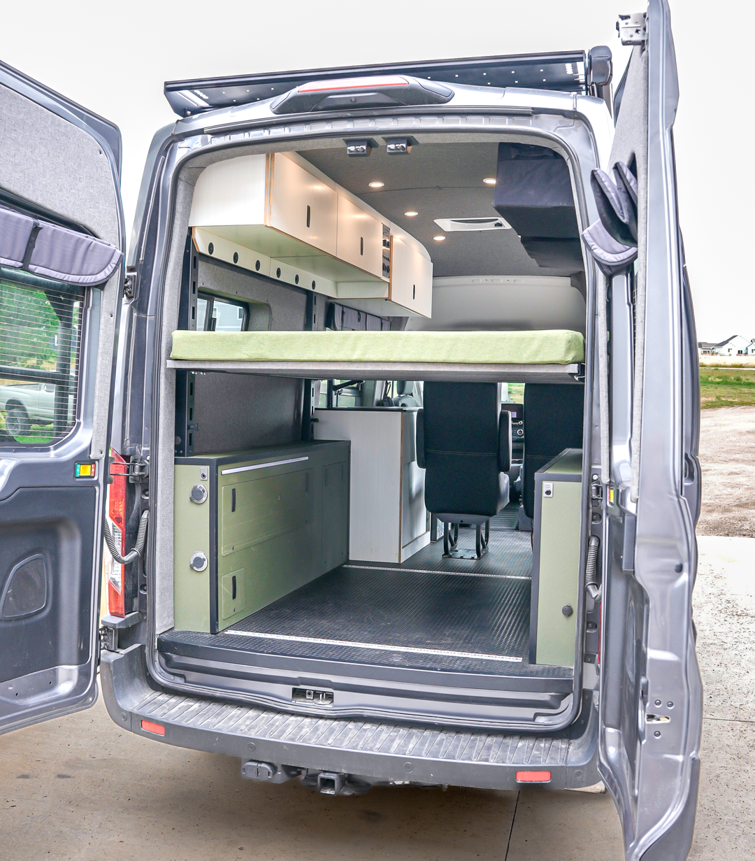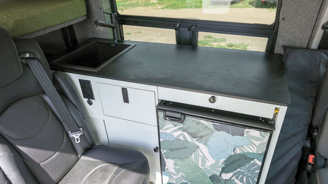 The gear hauler is the quinticential camper van. Crafted for the adventurous spirit, this design accommodates 2 sleepers and 2 passengers, with tons of room for bikes, SUP’s, skis, and gear. A complete kitchen ensures you're prepared for your next journey. This base buildout is the ideal platfrom to expand upon to build the ultimate camper for you and your crew.