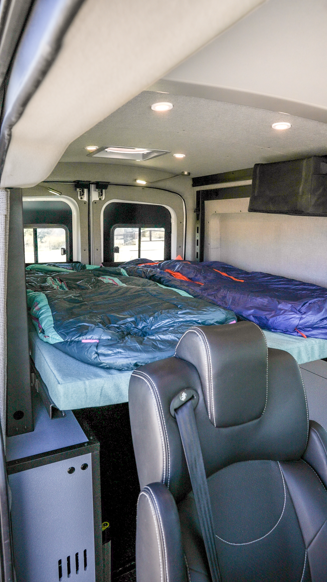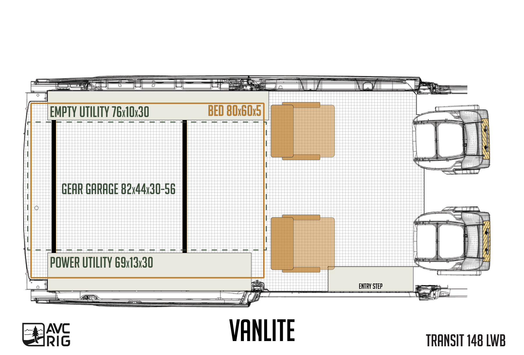 The Vanlite build is made for all you minimalists out there. We understand not everyone needs a feature packed layout. After all, the main reason for a camper van is a good nights sleep on your adventures. Everything else is just for comfort. The Vanlite sticks to the essentials. Professionally finished interior, lights, some storage over the wheel wells, and a bed, that’s it! We have a list of things you can add to make your experience as comfortable as possible.