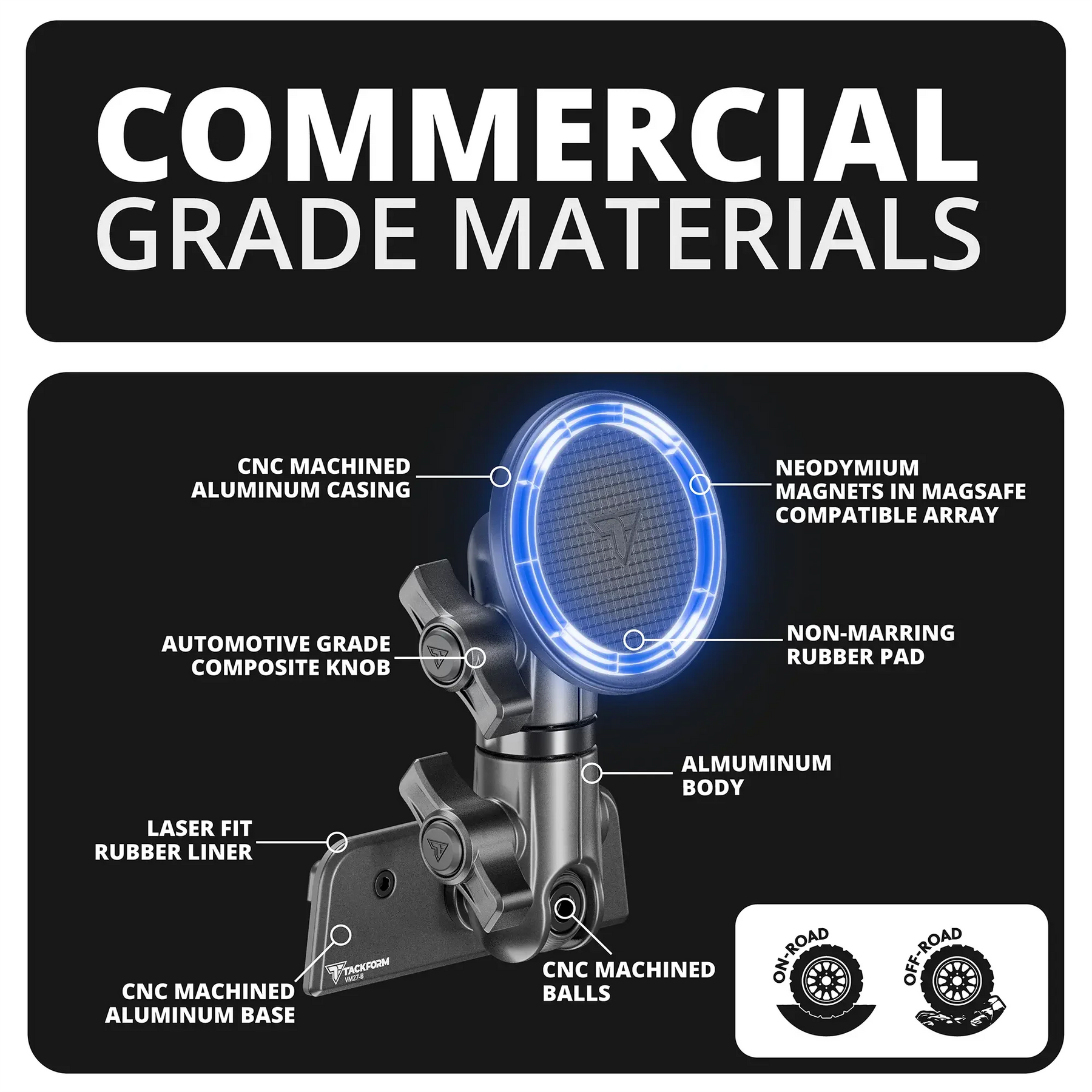 Upgrade your 2020-2025 Ford Transit with the most rugged and dependable ALL-METAL vent mounted magnetic (MagSafe) phone holder setup on the market. Engineered to meet the demands of all types of drivers, each vent mount kit is built from high-grade 6061-T6 aluminum and CNC machined for enhanced strength and durability. Using laser scanning technology, our vent brackets are precisely designed to match the complex contours of your vent bezel, while the hardcoat anodized finish provides an OEM look and feel, seamlessly blending with your vehicle's interior.